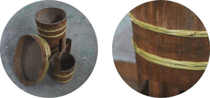 大桶を作る職人は今や“稀な存在”になってしまいましたが、当店では現在も製作を行なっており、1つ1つ丁寧な仕事を心がけてお作りいたします。1~5石の桶も数多く手掛けておりますのでお気軽にお申し付けください。また、現存の大桶の木材部分が使用可能であれば修理等もいたします。国内でしたら交通費をいただければどこでも下見にうかがいます。